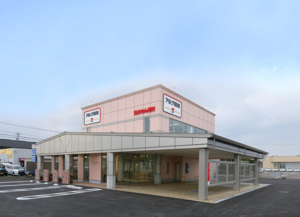 北陸3県を中心に49店舗展開し、まちの「かかりつけ薬局」として、地域の皆様の健康をサポートしているアルプ薬局の、店舗建設からメンテナンスまで担っております。
